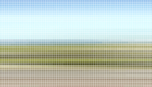 Linear Still interprets its still graphical landscape (left component) by reading and displaying each of its "pixels" in a time-based sequential order (right component).