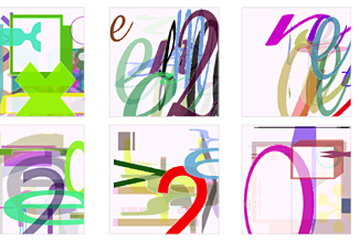 alphabets (randomly selected from eight). Coordinates, scale, color, proportion